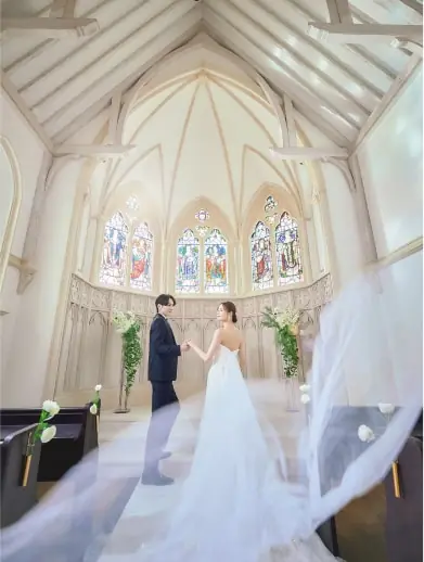 撮影専用のチャペルは中世ヨーロッパにあった聖堂の意匠を